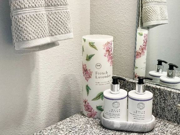 消毒设计——厨房和浴室拥有隐藏的紫外线灯可对表面进行消毒,而更容易清洁的硬质表面保留的污染物较少。台面最好选用石英、石头等抗菌材料。WB所有的台面都是石英石的材料,烤漆的橱柜表面也非常易于清理。