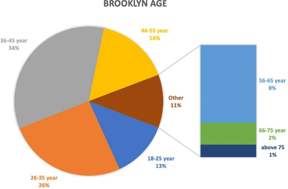 布鲁克林社区中居住的最高年龄为83岁,是三个调查社区中年龄最大的租户