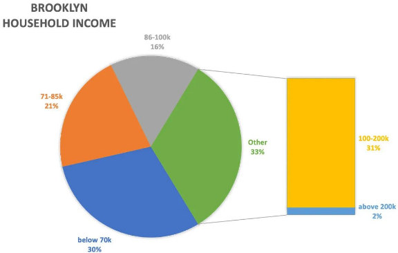 布鲁克林社区的居民平均家庭年收入为98,810美元,平均信用分数646分