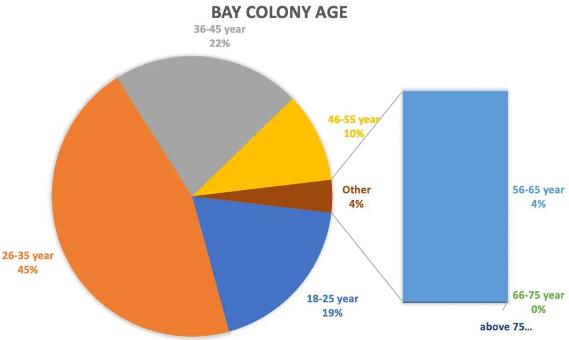 26岁至35岁人口有45%,约占总成年人口的一半,是三个社区中最高的比例