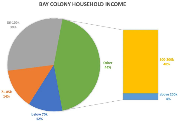 低于7万家庭年收入的人群仅占12%,是三个社区中最低的比例