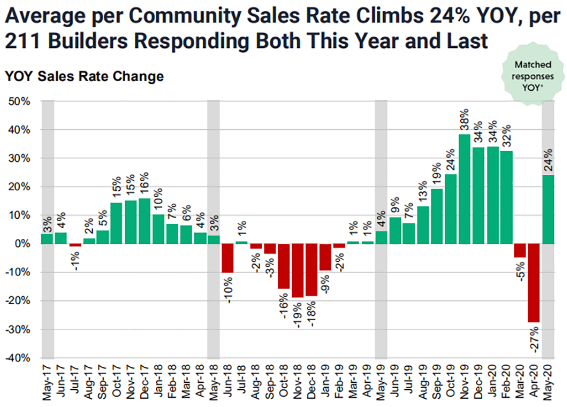 调查数据显示:五月份强劲的市场需求、低转售率,以及历史上最好的抵押贷款利率,这一系列因素共同推动五月份市场新屋销售表现强劲,重回疫情前的水平。