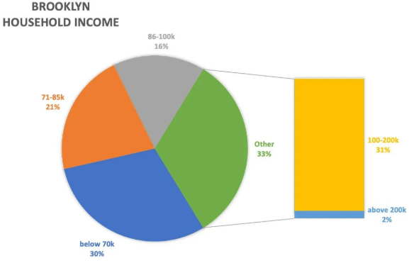 在本次统计中,最有钱的租户居住在布鲁克林小区,有两户租户家庭年收入分别达到75.6万美元和96.5万美元